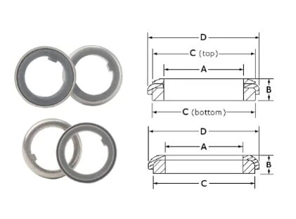Bushing Size (A) | Height (B) | Seal Diameter (C) | Outer Diameter (D) | Seal Style | ||||